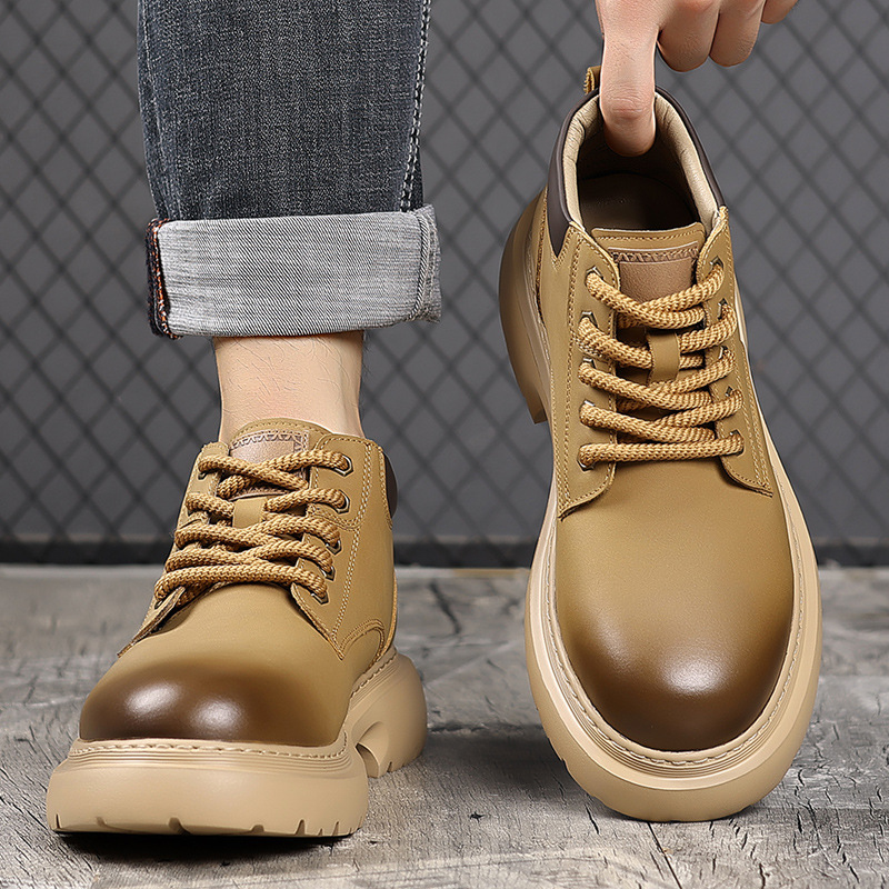 Men’s Casual Martin Boots Mid-cut Soft Thick-soled Yellow Leather Shoes Retro Short Boots